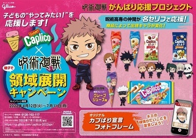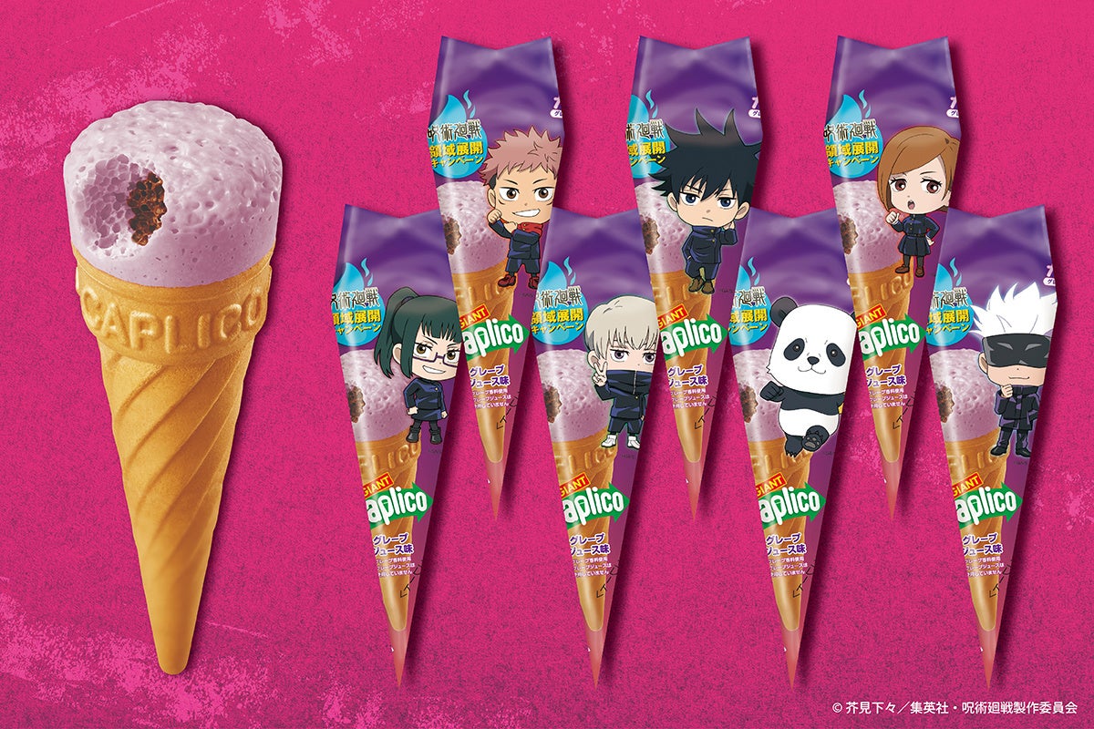 大人気TVアニメ「呪術廻戦」と「カプリコ」コラボお菓子「ジャイアントカプリコ呪術廻戦<グレープジュース味>」が2022年4月12日に発売!親子で領域展開キャンペーンなどが実施され、スマホで応援メッセージやフォトフレームで遊べます。コラボお菓子の発売日、価格、キャンペーン内容・遊び方などをチェック!