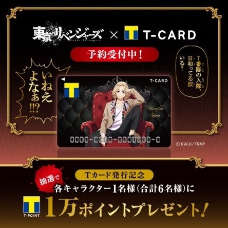 大人気TVアニメ「東京リベンジャーズ」とコラボした『Tカード(東京リベンジャーズ)』の予約受付が2022年3月14日(月)より開始決定!。Tカード早期発行特典や豪華景品 ・ Tポイントが当たるキャンペーン、フォトスポットイベントなどが開催!『Tカード(東京リベンジャーズ)』の予約・特典詳細、店頭販売日程、グッズ種類・値段などをチェック!