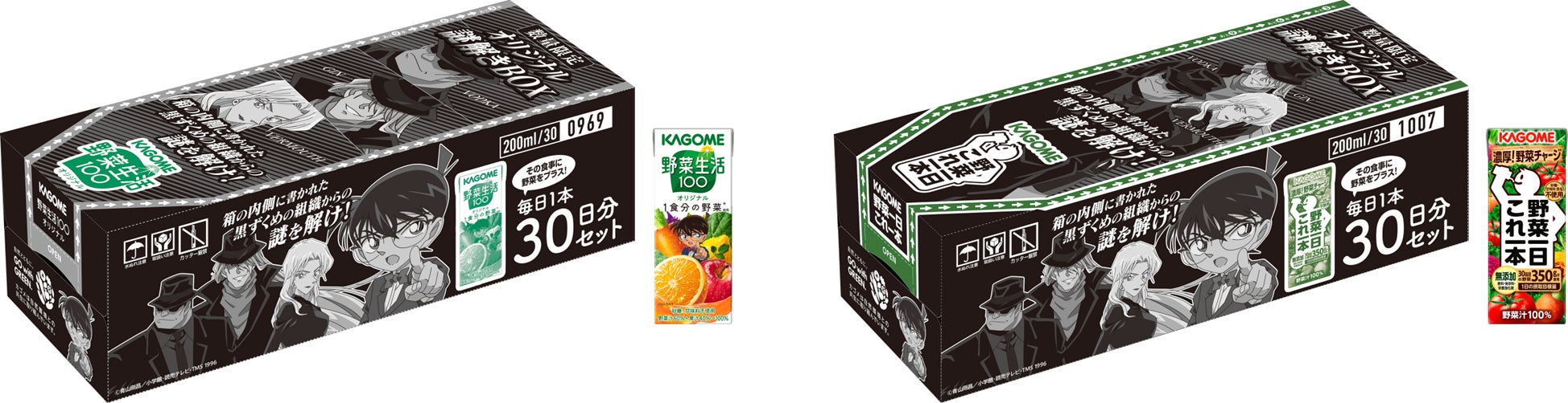 また、9/26(月)キャンペーン開始時からWEB上で楽しめる謎解き企画を実施。さらに、本キャンペーンに合わせて、野菜生活100『名探偵コナン』オリジナルデザインパッケージの販売等、楽しむことができるコンテンツが多数用意されています。